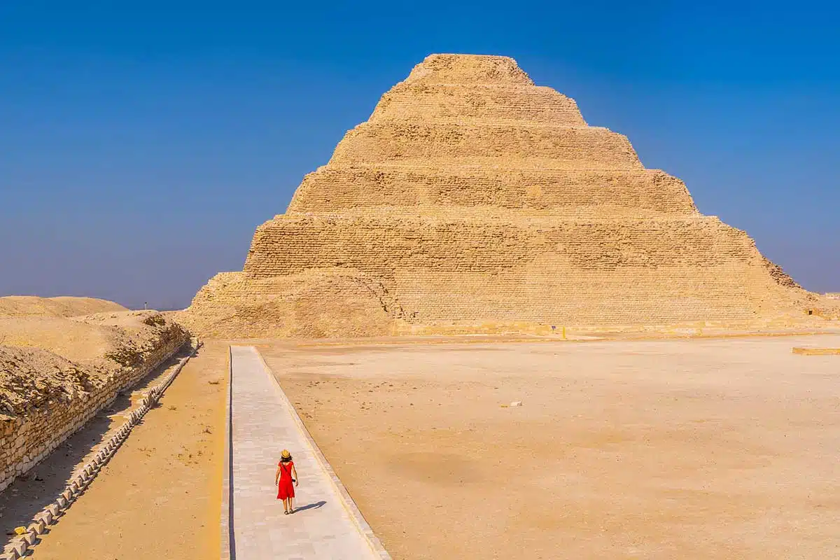 Designed by Imhotep, this stepped structure marks the transition from mastabas to true pyramids.