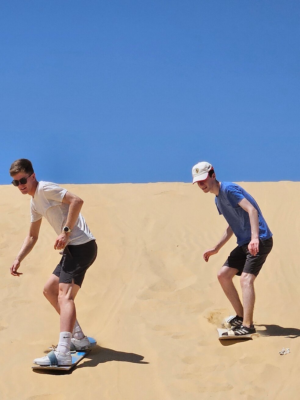Experience the thrill of sandboarding on the golden dunes, followed by a moment of peace by the shimmering Magic Lake. Watch the sunset paint the desert sky with unforgettable colors. -